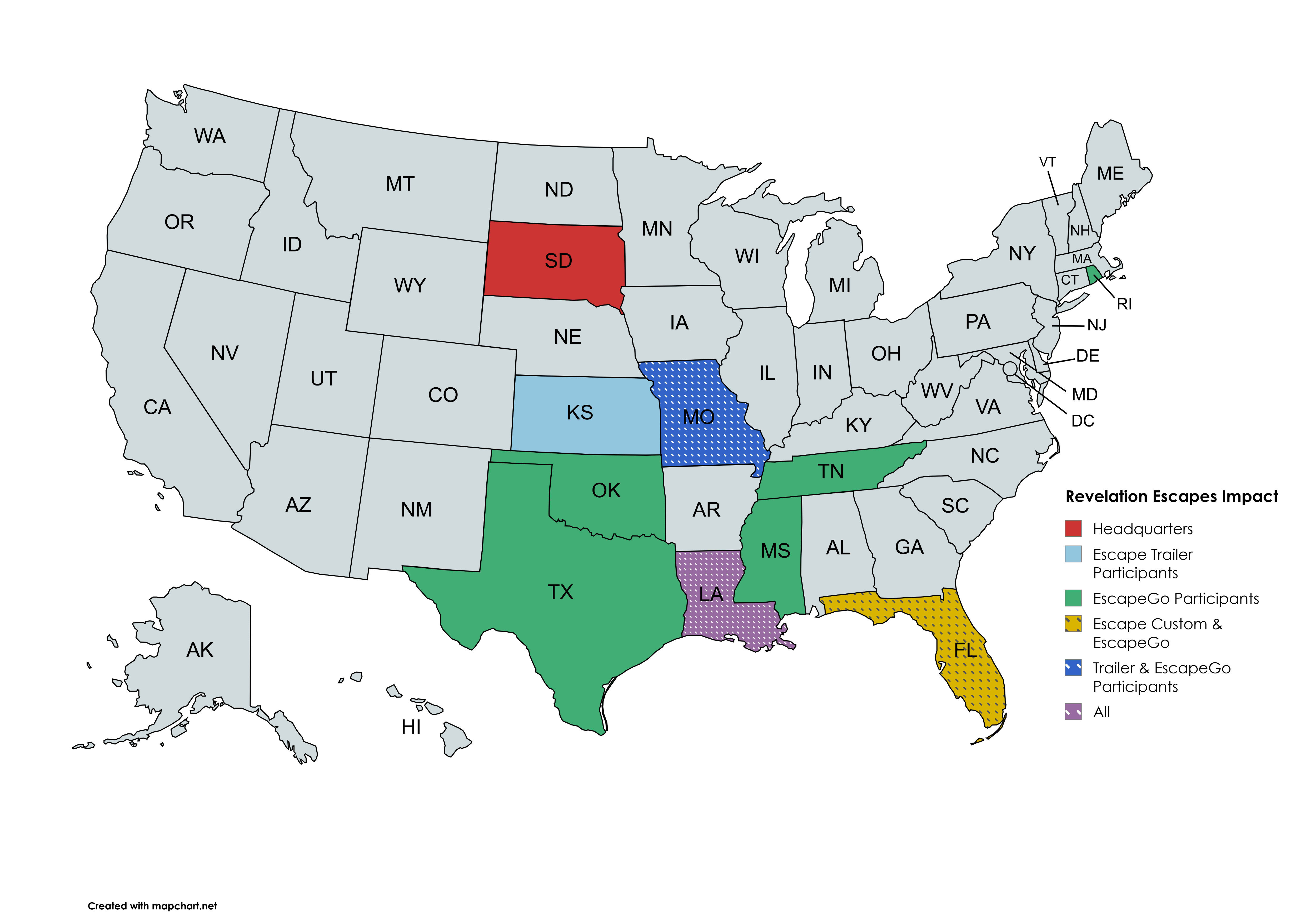 The map below represents more than locations. It reflects doors the Lord has already opened through Revelation Escapes Ministry — places where people have gathered, participated, partnered, and engaged with what God is doing through these experiences.